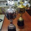 Figura realizada en resina Con base de madera y chapa con inscripcion personalizada en la base.