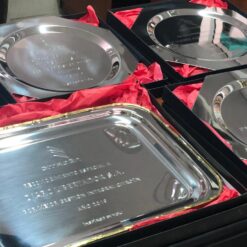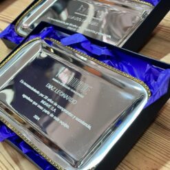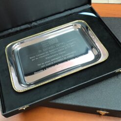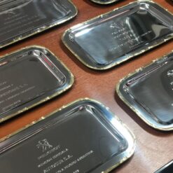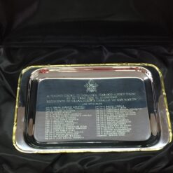 Bandeja de acero inoxidable, con bordes de bronce. Modelo RECTANGULAR