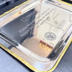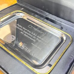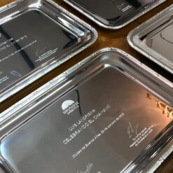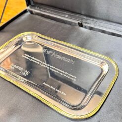 Bandeja de Acero Inoxidable Rectangular Pulida con Bordes en Bronce