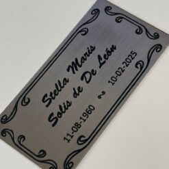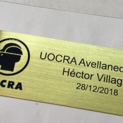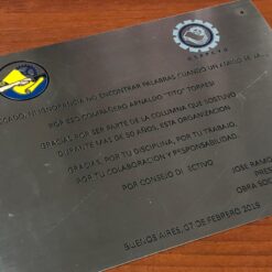 Chapa sola grabada bronce o acero inoxidable letras fresadas y pintadas. El precio es por cm2. Al completar el largo y el alto el precio sera modificado automáticamente.