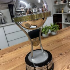 Réplica de la Copa Sudamericana, un trofeo de diseño elegante y estilizado que se entrega anualmente al campeón del torneo. Mide 51 cm de altura y pesa 5.5 kg.