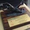 Figura realizada en resina Con base de madera y chapa con inscripcion personalizada en la base.