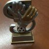 Figura Botín y Balón en Resina con Base de Madera y Chapa Grabada