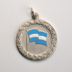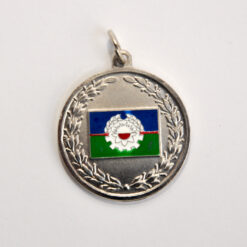 Medalla base plateada con bandera de color. 32 mm de diametro.