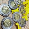 Medalla deportiva de fútbol jugadores plateada 32 mm de diámetro.
