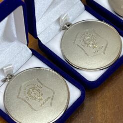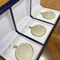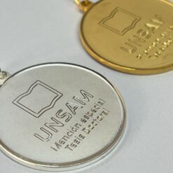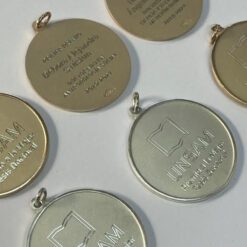 Medalla estampada en bronce, con filete en el reborde, pulidas,