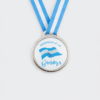 Medallón de 50 mm de diámetro.Bordes con laureles. Sticker full color con resina. Color base plata, cobre o oro.