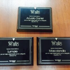 Placa Aluminio Base Negra con Base de Madera y Letras Oro o Plata