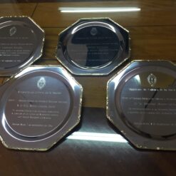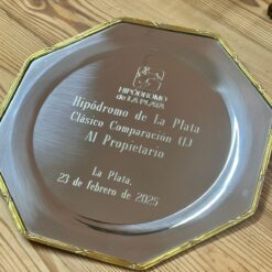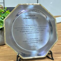 Plato de acero inoxidable, con forma octogonal, CON MOLDURA de bronce LUIS XV, con grabado, caja y atril