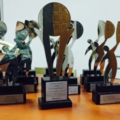 Premio personalizado realizado en ACRILICO o BRONCE, con forma personalizada. Montado en base d emadera grade 15×20, o base doble 15×20 + 13 17 cm, o base de madera personalizada