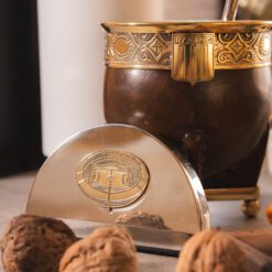 La tapa antiviento con el CILINDRO asegura que la yerba mate se mantenga fresca y protegida en todo momento. La bombilla combinada en alpaca y punta d ebronce tambein lleva el logo.